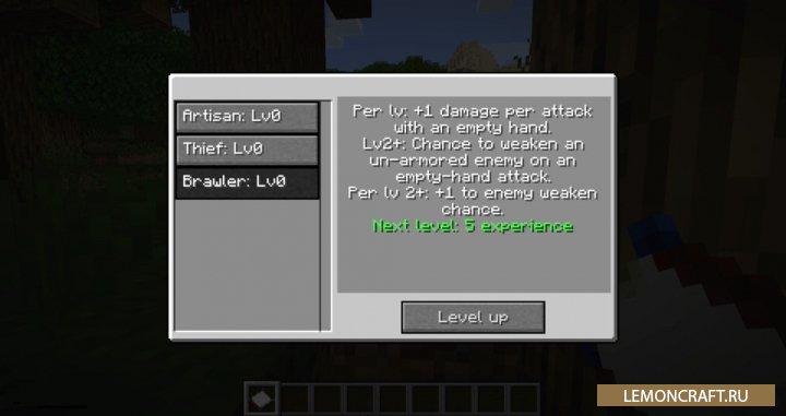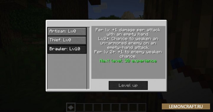 Мод на новые классы игрока SkillCheck добавит в игру три уникальных класса: вор, потасовщик и ремесленник. С помощью специального листа вы можете развивать данные классы, повышая их уровень. В результате каждый класс будет получать новые способности с повышением уровня.